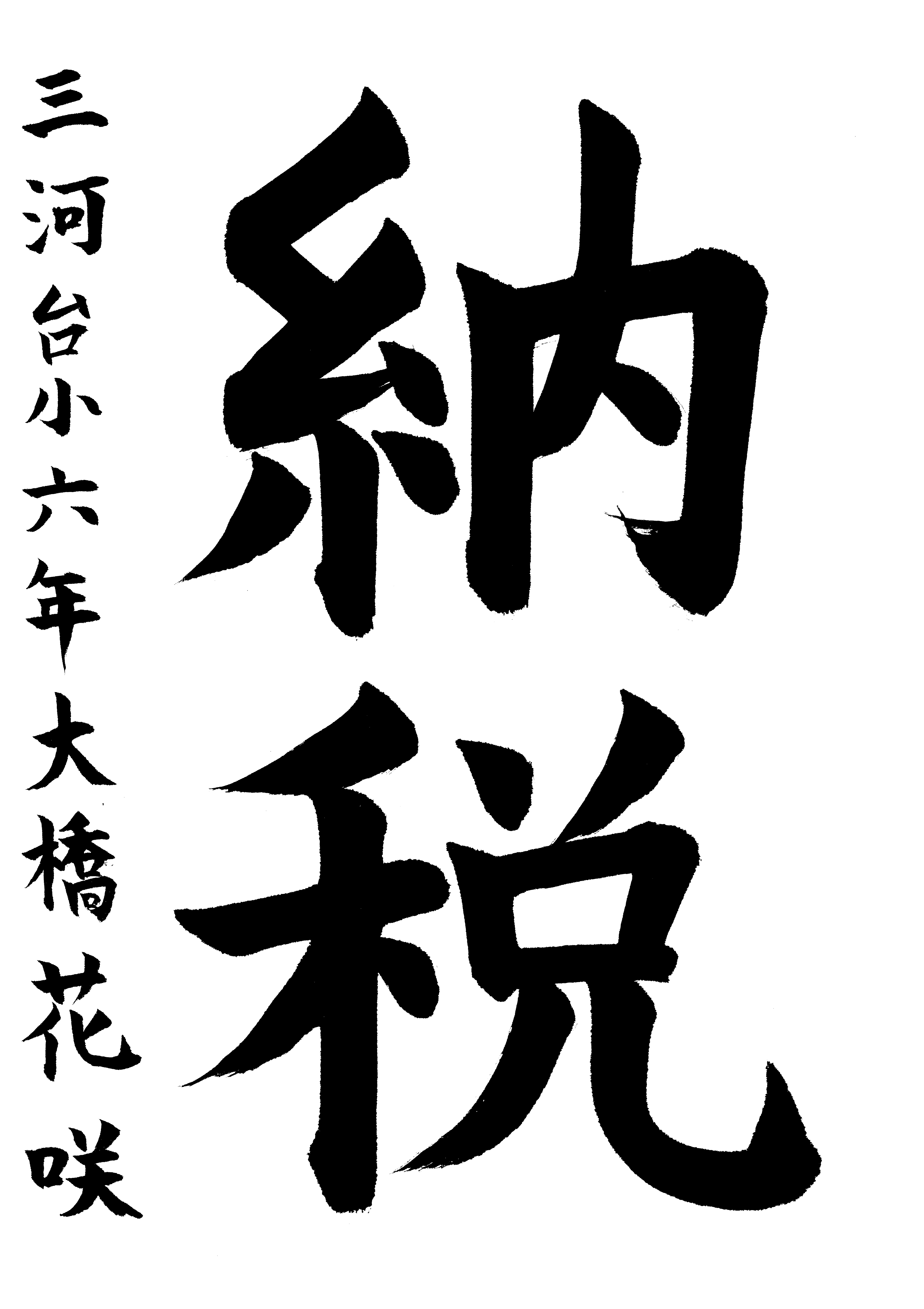 福島法人会では、税に関する関心を高め、併せて広く一般市民の納税意義と納税知識の普及を図ることを目的として福島市内の小学校3年生から中学校3年生までの「小中学生による税に関する書道展」を開催いたしました。 今年度は、小学校25校82点、中学校8校17点の応募をいただき、令和7年9月17日コラッセふくしまで開催した審査会にて各賞を選出いたしました。入賞作品は、以下のとおりです。 なお、入賞作品は、福島市内各所にて展示を予定しております。 *画像をクリックすると大きなサイズでご覧いただけます